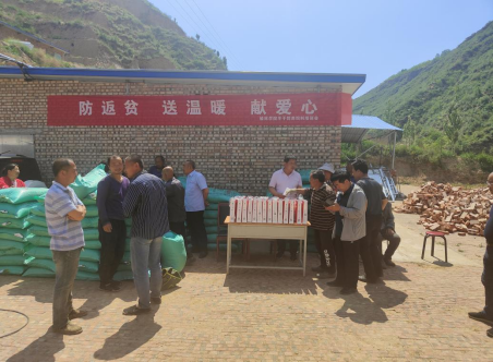 5月24日,bat365正版唯一官网乡村振兴办在清涧县枣林则沟村举行“送温暖防返贫”活动,为当地养殖户免费发放4吨育肥饲料。