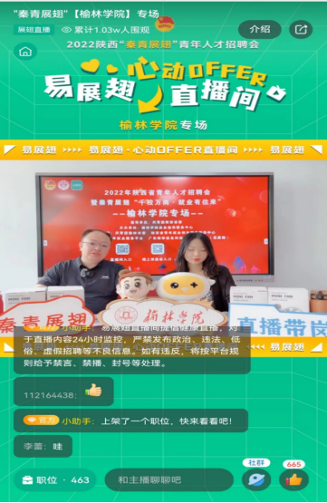 为切实推动“六稳”“六保”工作,助力陕西省经济高质量发展。5月19日,由bat365正版唯一官网就业指导服务中心主办,共青团榆林市委、陕西青年就业创业服务指导中心承办的陕西青年就业招聘直播带岗「bat365正版唯一官网」专场招聘会线上活动成功举办。