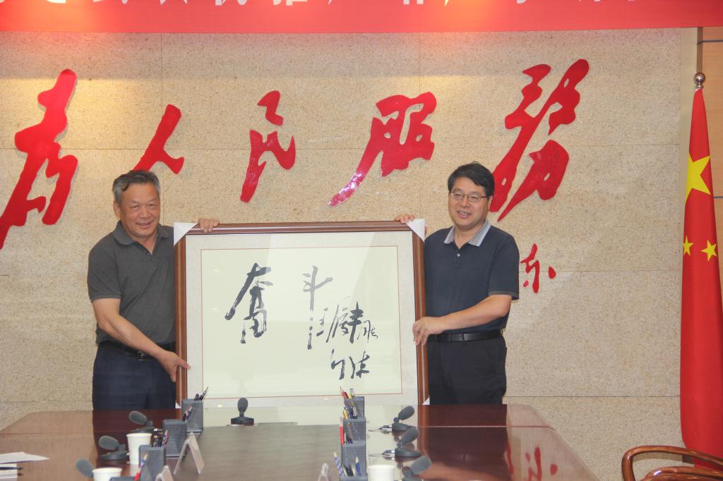 座谈会后,张新柱向张毅同志赠送bat365正版唯一官网精神“奋斗”牌匾,张晓代表学校为张毅同志颁发了“特聘教授”聘书。