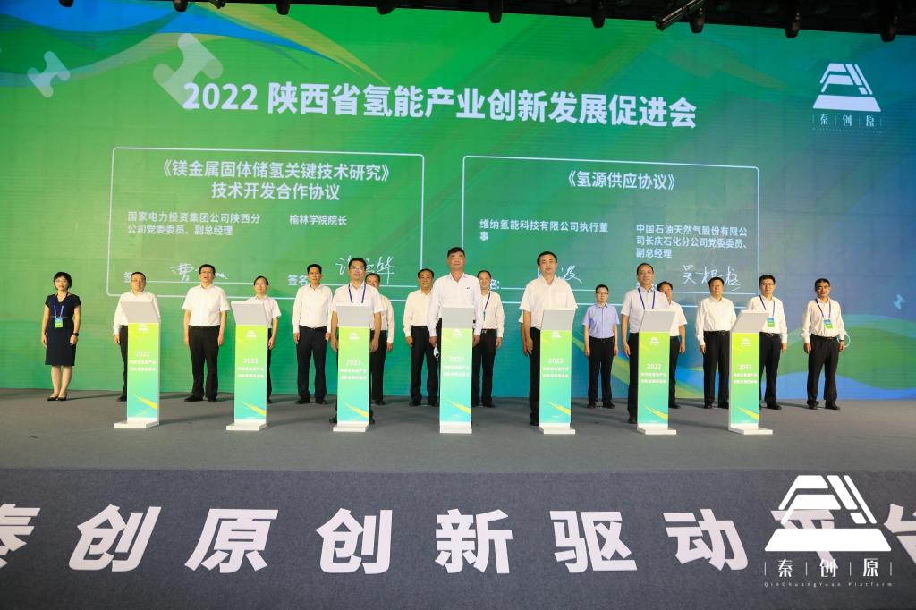8月15日,bat365正版唯一官网校长许云华参加了陕西省氢能产业创新发展促进会。会上,许云华与国电投陕西分公司签订《镁金属固体储氢关键技术研究》技术开发合作协议。双方围绕榆林丰富的副产氢和原镁资源开展联合技术攻关,研发新型镁合金固态储氢材料及固态储氢器,项目总投资约900万元。课题组与榆神工业区管委会合作共建制氢、储氢、加氢、用氢全产业链示范项目,目前已建成500kg/天加氢站及氢燃料电池重卡示范;与中科院大连化学物理研究所、北京电工研究所等国内高水平科研院所建立长期友好合作关系,在氨分解制氢、镁合金储氢、环烷烃有机液态储氢等方面开展相关研究工作。