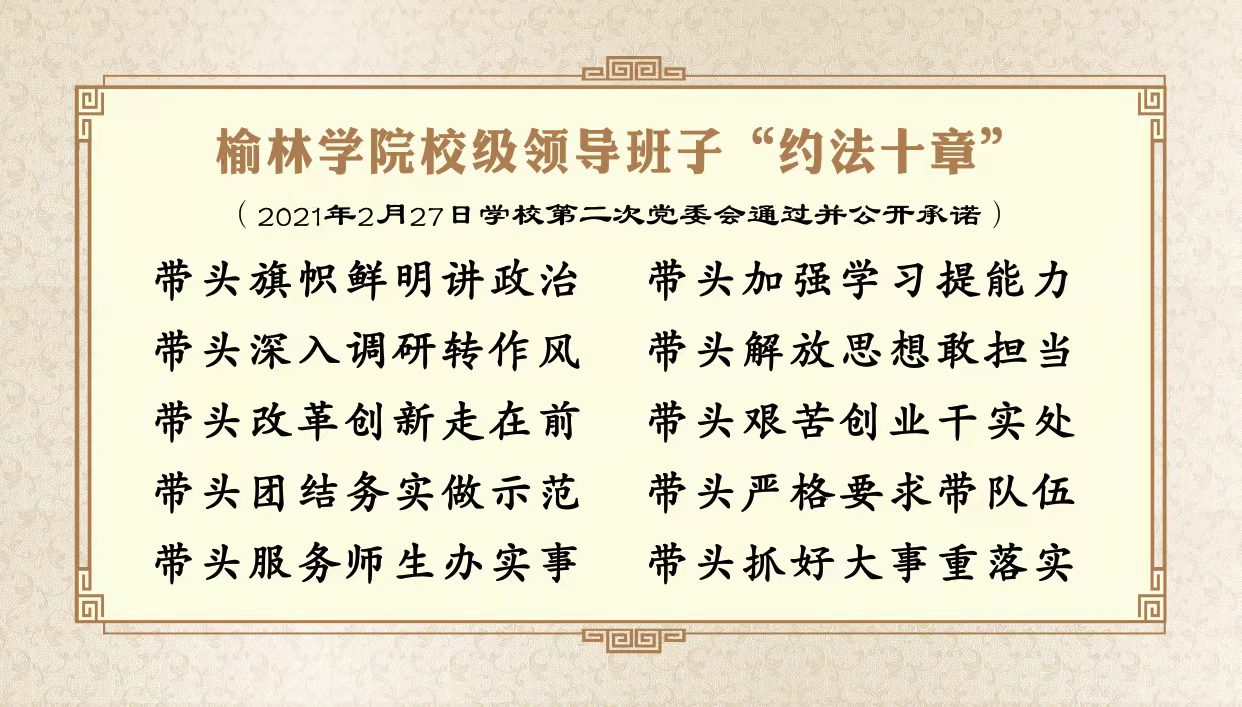 2021年,bat365正版唯一官网领导班子坚持以习近平新时代中国特色社会主义思想为指导,认真贯彻党中央和省委的决策部署,着力提升教书育人能力、服务地方能力和办学治校能力,奋力建设党和人民满意的大学、榆林市委市政府满意的大学、全校师生满意的大学。一年来,取得了显著成绩,社会影响力不断提升,为谱写陕西高质量发展新篇章贡献了榆苑力量,努力交出了贯彻落实习近平总书记重要批示精神的优秀答卷。回首2021,学院领导班子披荆斩棘,全校上下励精图治,追赶超越硕果累累,重点做好“讲政治、重内涵、强党建”三篇文章: