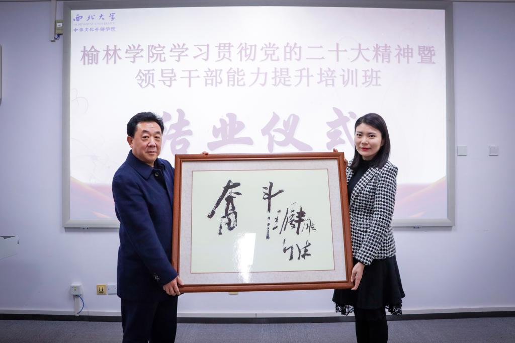 最后,尚爱军代表学校党委向西北大学赠送“奋斗”牌匾,希望兄弟院校间加强交流合作、共襄发展。