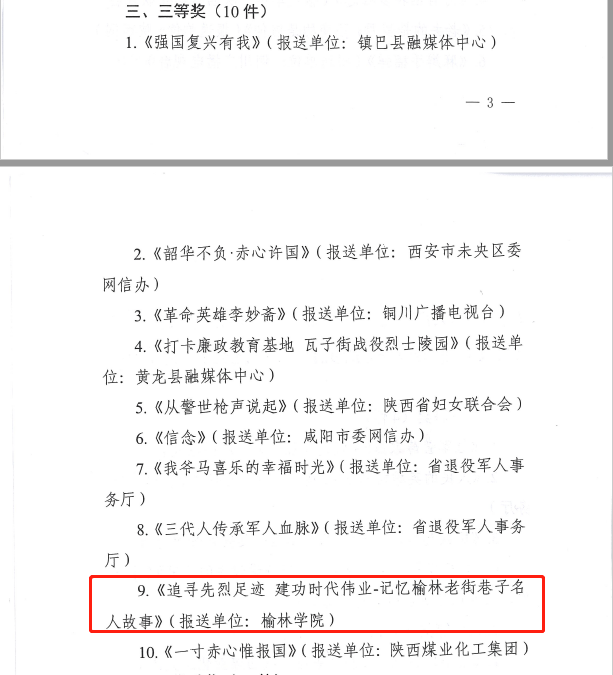 近日,由中共陕西省委网络安全和信息化委员会办公室主办的2022年陕西“追寻先烈足迹 建功时代伟业”短视频征集大赛评选结果揭晓,bat365的《追寻先烈足迹 建功时代伟业——记忆榆林老街巷子名人故事》(刘微)微课视频荣获三等奖。