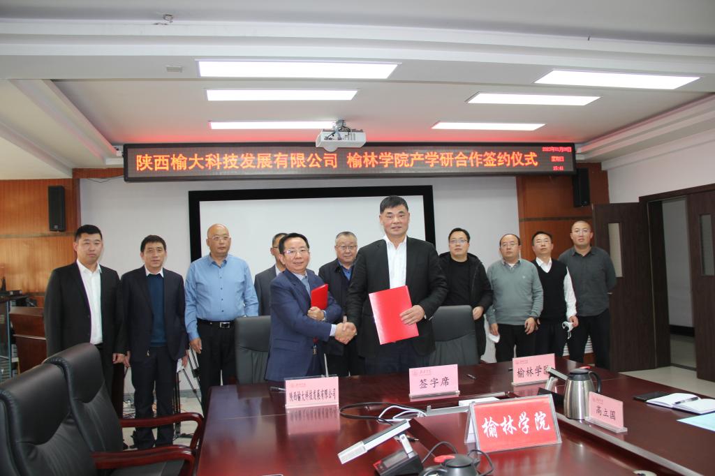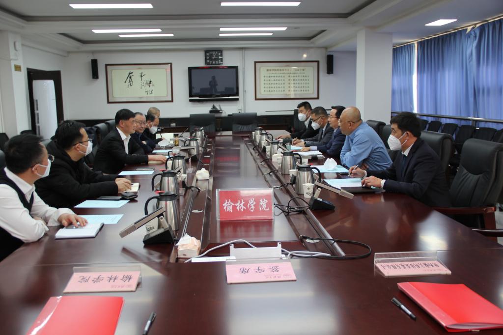2023年1月8日下午,陕西榆大科技发展有限公司董事长兼总经理乔月东、榆林市科技局副局长乔东一行来bat365座谈交流,双方签署了产学研合作协议,bat365正版唯一官网校长许云华、副校长张晓出席,科研处、生命科学学院等部门负责同志参加会议。