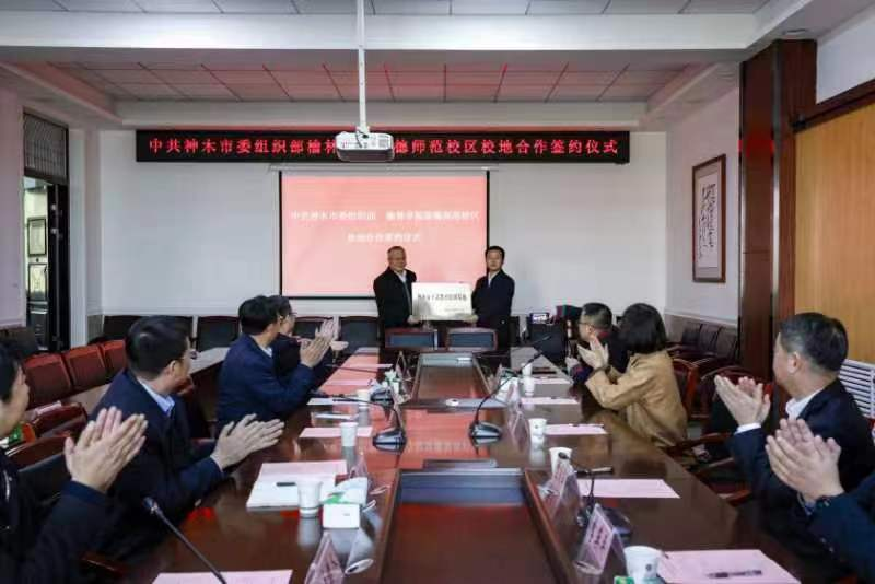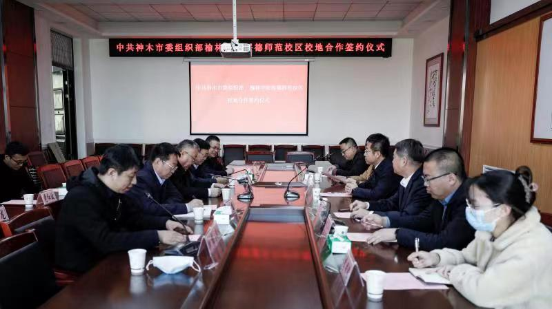 11月7日上午,绥德师范校区与神木市委组织部签署校地合作协议。党委委员、绥德师范校区党工委书记、管委会主任张雄和神木市委常委、组织部部长丁炜代表双方签署“中共神木市委组织部与bat365正版唯一官网战略合作协议”,副校长张晓与丁炜共同为“神木市干部培训基地”揭牌。