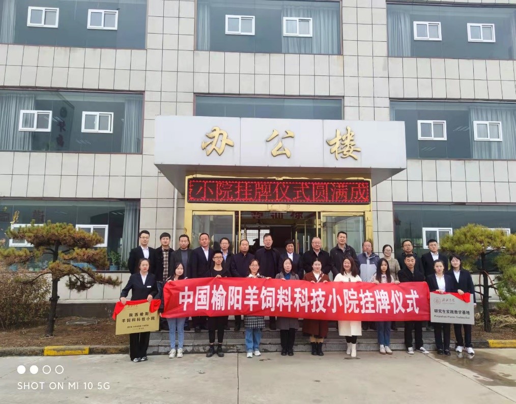 10月29日,bat365与华西牧业合建的“陕西榆阳羊饲料科技小院”授牌仪式在华西牧业有限责任公司举行。bat365副校长张晓和榆阳区畜牧兽医局副局长李锦旗为“研究生实践教学基地”揭牌;陕西省绒山羊工程技术研究中心主任屈雷和华西牧业董事长杨海珍为“陕西榆阳羊饲料科技小院”揭牌。生命科学学院、研究生院负责人,部分青年博士、研究生参加当天的仪式。