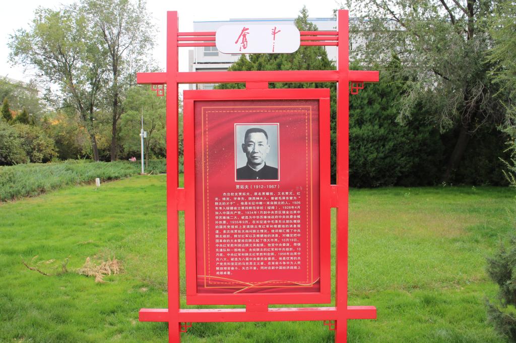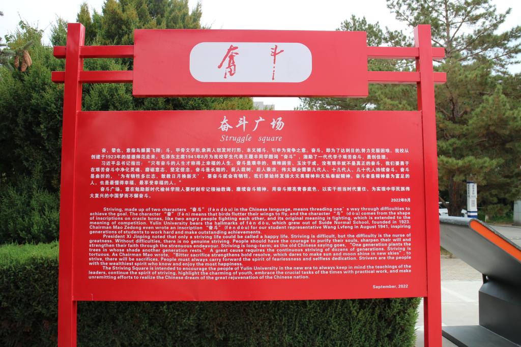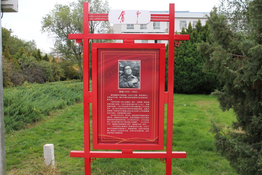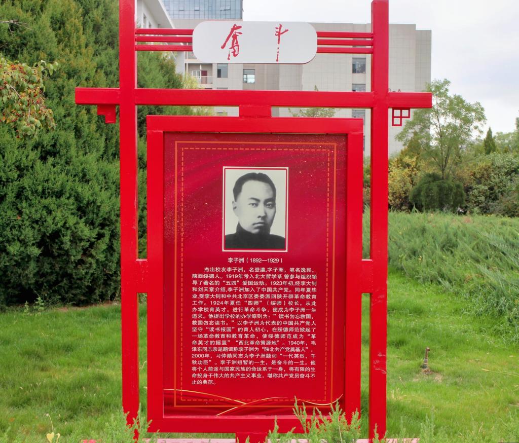 奋斗广场红色文化元素丰富,凸显育人功能,人物宣传栏有6位是杰出校友和2位榆林名人。