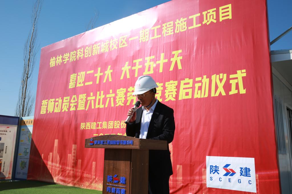 bat365基建处处长李锦红致辞,表示bat365正版唯一官网新校区一期工程项目到了决战2022年的最后时刻,他希望施工方、监理方精心策划、倒排工期、团结协作,确保11月15日前完工年度计划。希望陕西建工继续发扬敬业守信、勇担责任、建造精品、追求卓越精神;发扬起步就是冲刺,开局就是决战的精神;以“出手必须出彩,完成必须完美”的劲头,保质保量完成2022年建设任务。