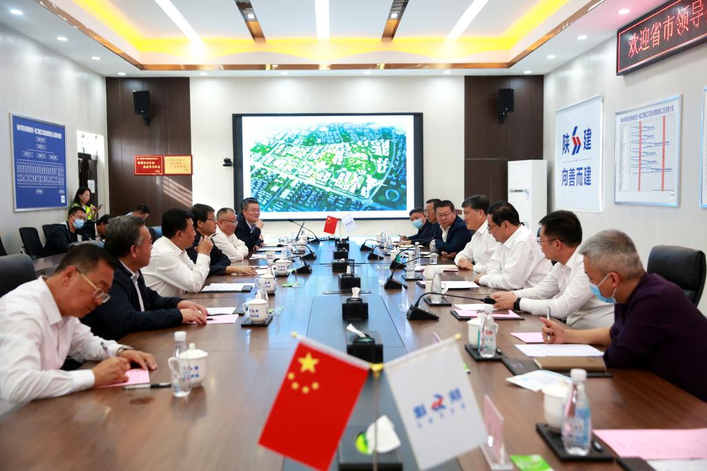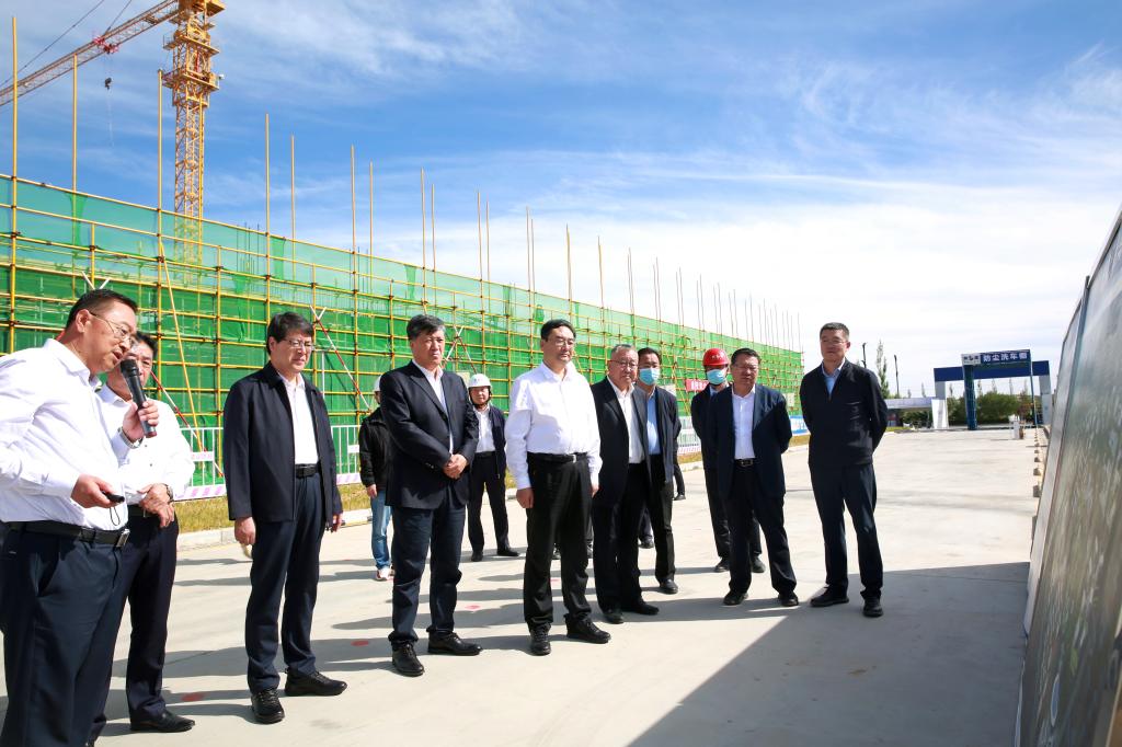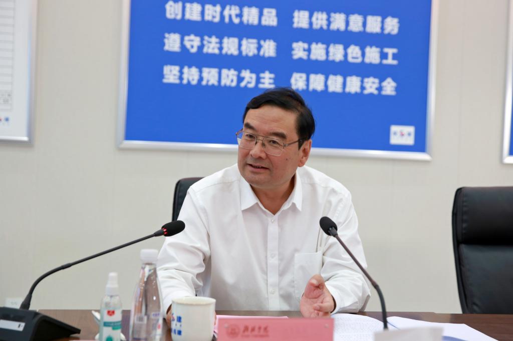 在科创新城校区一期工程施工现场,王建利、张晓光听取了工作人员对科创新城校区建设总体情况介绍,现场调研了先导工程火热的建设场面,了解了能源化工组团建设、完工、投入使用的具体情况,之后在项目部会议室进行了深入地讨论交流并现场办公解决问题。