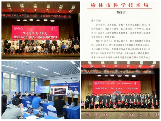 (一)“乐讲”铸魂育初心。举办奋斗讲堂、校史讲解大赛、演讲比赛、辩论赛、红色经典朗诵大赛赛等主题活动,成立党的二十届三中全会精神大学生宣讲团和退役大学生宣讲团,为学生提供展示自我、锻炼能力的平台,引导学生坚定理想信念,勇担时代使命,让“乐讲”成为学生的行动自觉。2024年,为校史馆培养22名校史讲解员、为榆林市廉政教育馆培养8名优秀讲解员、为“挑战杯”、中国国际大学生创新大赛培养40名大赛路演讲解员,bat3652名学生讲解员获榆林市科技局表扬,对其在第三十一届农高会上的优异表现给予高度评价。