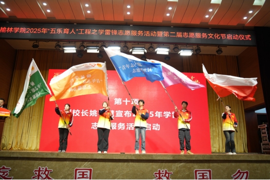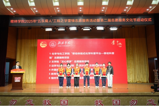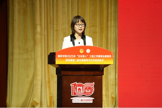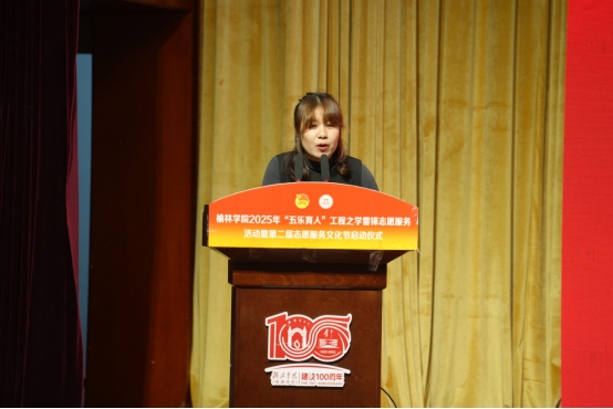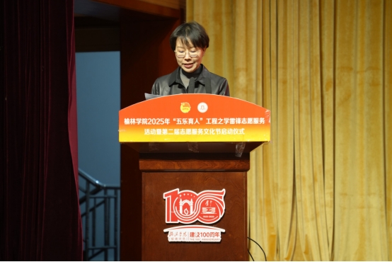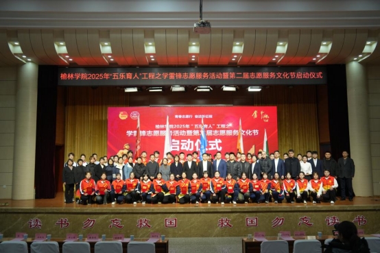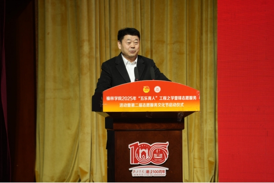 为深入学习贯彻党的二十大和二十届二中、三中全会精神,全面落实习近平总书记关于志愿服务的重要论述和系列重要指示批示精神,深化“扣好人生第一粒扣子”生动实践,推动学雷锋活动融入日常、化为经常,3月4日,由五乐育人学院主办的bat365正版唯一官网2025年“五乐育人”工程之学雷锋志愿服务活动暨第二届志愿服务文化节启动仪式在图书馆二楼报告厅举行。副校长姚学慧出席并讲话,宣传部、教务处、学工部、招就处、团委负责人,团榆阳区委书记张悦,榆林市青少年社工协会会长张旺,各二级学院党总支副书记、团总支书记及学生代表450人参加,仪式由团委书记蹇攀峰主持。