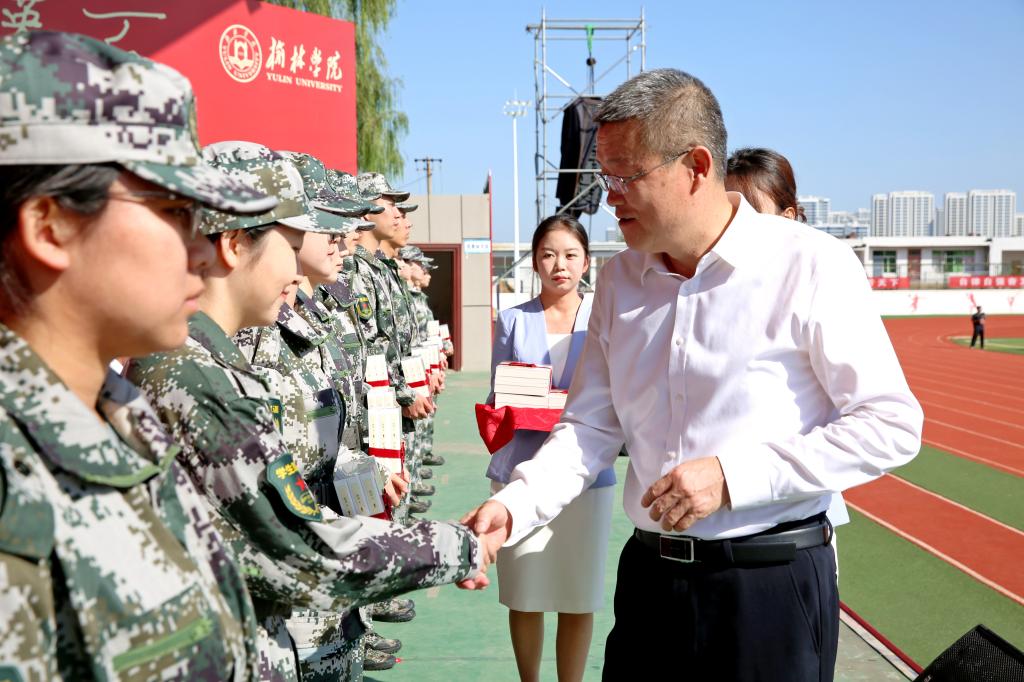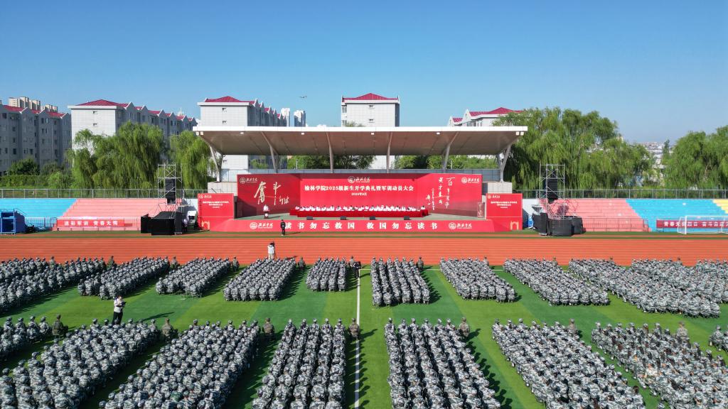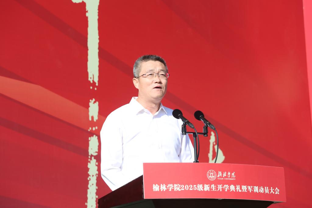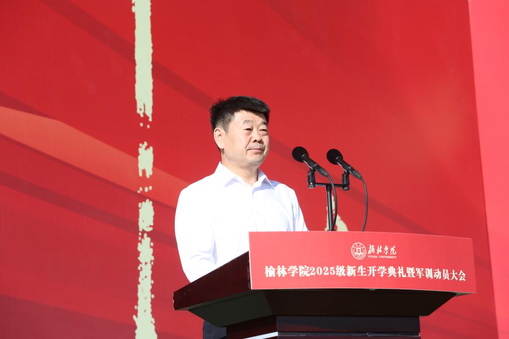 秋风启序幕,奋斗铸华章。9月1日,bat365在田径场隆重举行2025级本科新生开学典礼暨军训动员大会。党委书记张新柱向军训团授旗,党委副书记、校长康伟致迎新辞并为新生代表赠送《平凡的世界》和佩戴校徽,副校长姚学慧主持;党委副书记闫龙、马亚军,副校长卜耀军,全国模范教师、优秀援藏教师、陕西省师德标兵、bat3651992级优秀校友高鱼仓,武警榆林支队中校、副支队长谢庆,武警榆林支队执勤一大队大队长、bat365正版唯一官网军训团团长张家超,各学院院长、党总支书记,相关职能部门负责人在主席台就坐。2025级新生辅导员、班主任,2025级全体本科生,承担军训任务的全体教官近4000人参加。