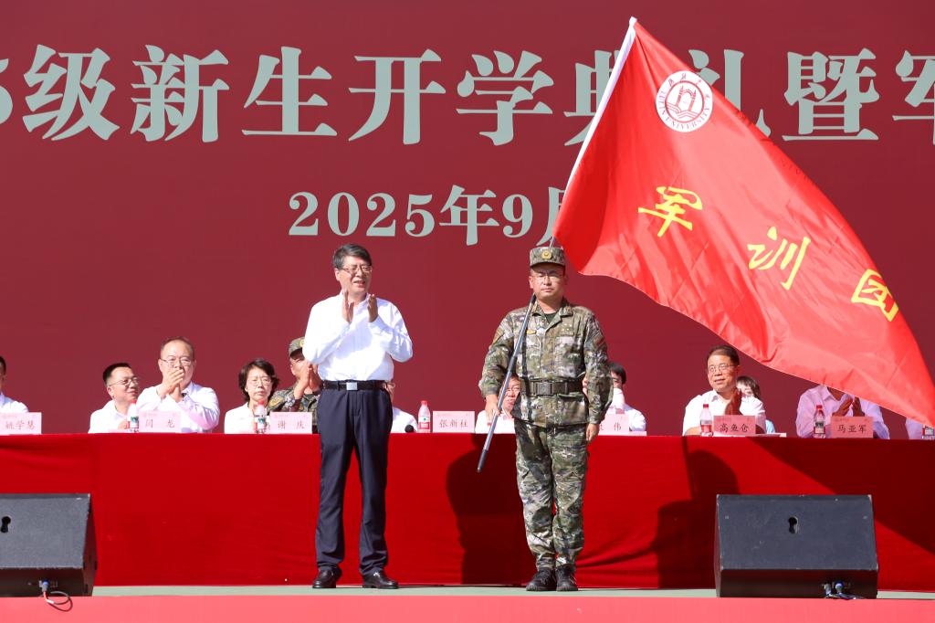 开学典礼后,新生将开始14天的军训,相信2025级新生能服从命令、听从指挥、刻苦训练,以军人的标准严格要求自己,以饱满的热情和顽强的意志,努力完成各项训练任务,新的人生篇章正等着你们来书写。今年是中国人民抗日战争胜利暨世界反法西斯战争胜利80周年,从抗战岁月到和平时期,从救亡图存到复兴追梦,青年一代要勇担历史使命,弘扬伟大抗战精神,不忘来时路,吾辈当自强,珍惜每一刻,奋斗每一天,在理论学习和社会实践中放飞青春梦想,在不懈奋斗中书写人生华章,努力成为堪当民族复兴大任的时代新人。