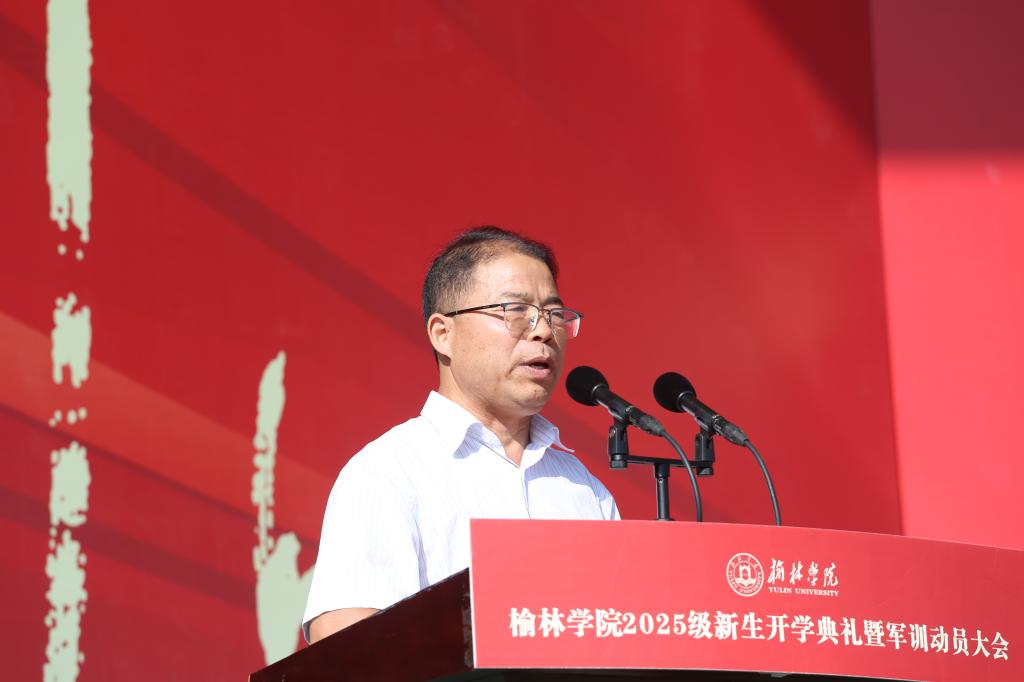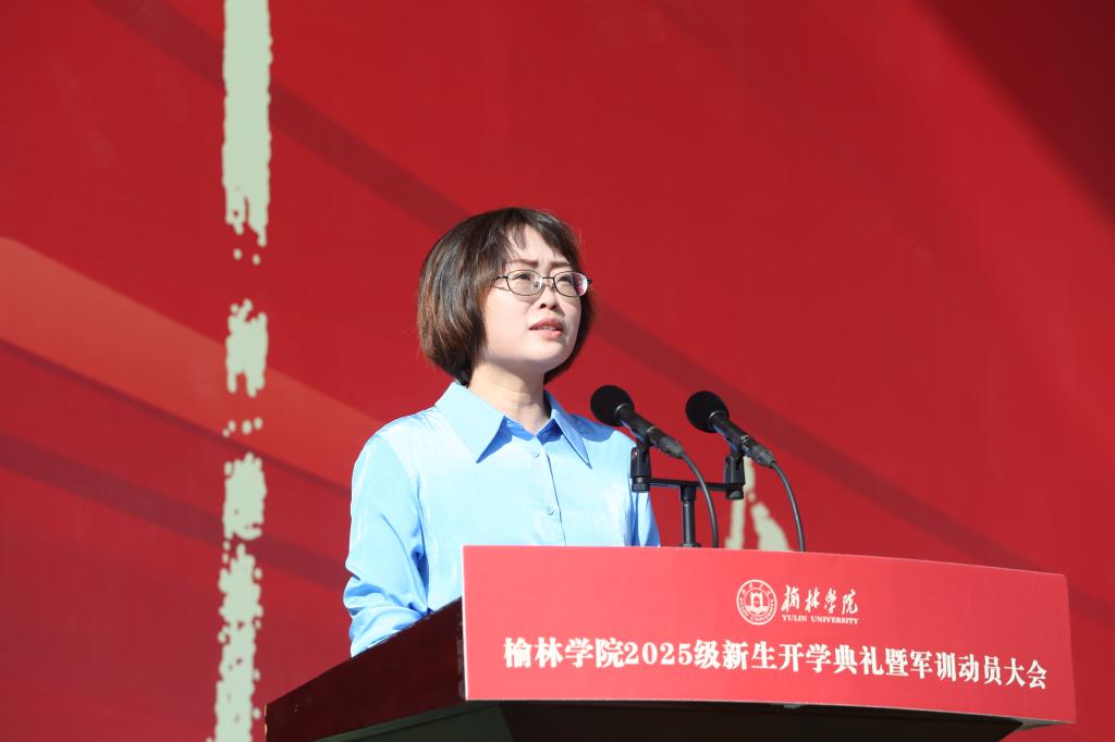 教师代表肖殷从要学会“归零”,重新出发;要珍惜时光,不负韶华;要立足榆林,胸怀天下三方面寄语2025级全体新生,少年应有鸿鹄志,当骑骏马踏平川,树立远大理想,勇担时代使命,潜心向学,勇于实践,主动拥抱人工智能,在追求真理的道路上不断超越自我,用实际行动践行“请党放心,强国有我”的青春誓言。