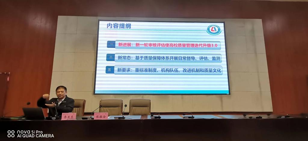 为了推进bat365新一轮本科教育教学审核评估整改工作,进一步落实OBE教学理念,构建“五自”质量文化,10月24日上午,全国高校质量保障机构联盟副理事长兼秘书长、中国高等教育学会教育评估分会副理事长李亚东研究员应邀为bat365作题为《新一轮审核评估引导的高校三级质量保障体系建设》报告。各学院分管教学副院长、教研室主任、专业负责人、教学秘书、核心课程教师代表及教学督导150余人参会,报告会由质评办主任张敬全主持。