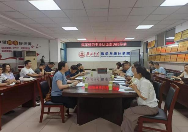 6月17日下午,数学与统计学院在学院会议室召开数学师范专业认证走访指导会。本次会议旨在全面梳理认证准备工作,明确责任分工,确保师范专业认证工作高质量推进。学院领导班子成员、数学与应用数学专业全体教师、质评办主任以及教学督导团团长共同参加了此次会议。