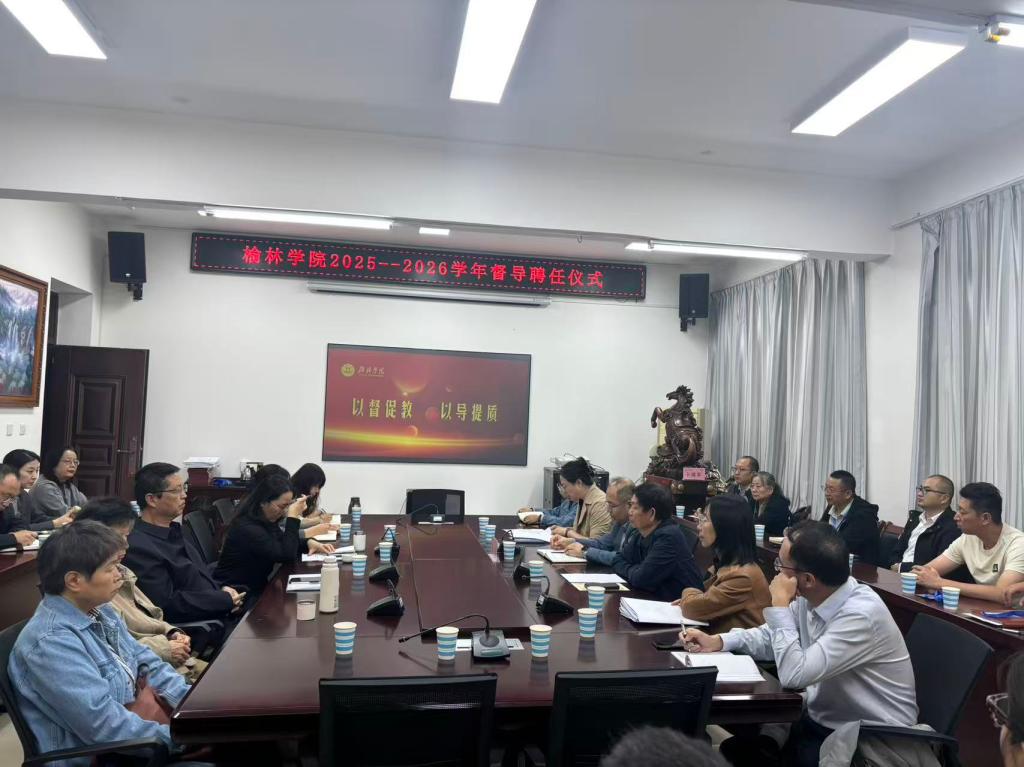 为促进本科教学质量提升,充分发挥学校督导团的作用,2025年9月26日下午,学校在6号教学楼体育学院会议室召开了“以督促教、以导提质”为主题的督导聘任会议。新一届本科教学督导团成员、二级学院督导组长、质评办全体工作人员、教务处负责人等参加会议,校党委副书记闫龙出席聘任会。会议由质评办主任冯莉主持。