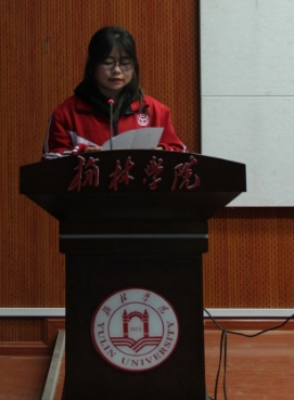 生命科学学院白蓉同学向大家分享了她的获奖感悟,她通过列举毛泽东主席每读一本书或者一篇文章都会在重要的地方标上记号;路温舒在没钱买纸的情况下,在宽宽的蒲草上做笔记,终成有名的法学家;元末学者陶宗仪躬耕于田野,经10余年的积累终成《南树辍耕录》表达了记笔记的重要性。