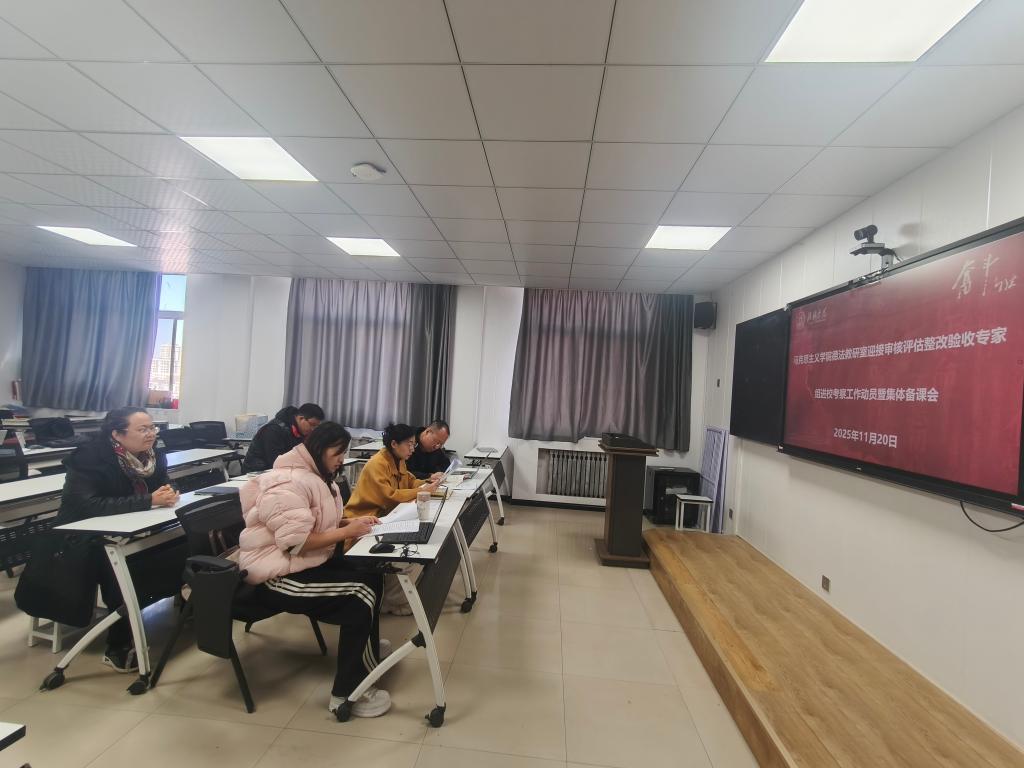 为扎实推进审核评估整改验收各项工作,全面提升课程教学质量,确保专家组进校考察顺利通过,11 月 20 日,《思想道德与法治》教研室召开审核评估整改验收专家组进校考察工作动员会暨集体备课会。
