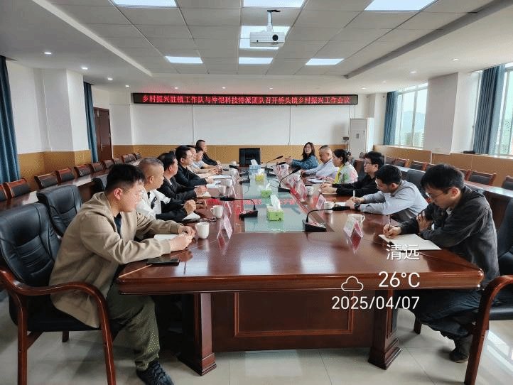 2025年4月7日,kaiyun云开登录入口kaiyun云开登录入口科技特派员臧莹安教授、陶攀博士团队,联合广州华昊研究院专家赴清远英德市桥头镇开展科技帮扶工作。团队与桥头镇新任党委书记冯大彰、驻镇帮扶工作队及当地企业代表座谈,共谋桥头镇农业产业升级路径。