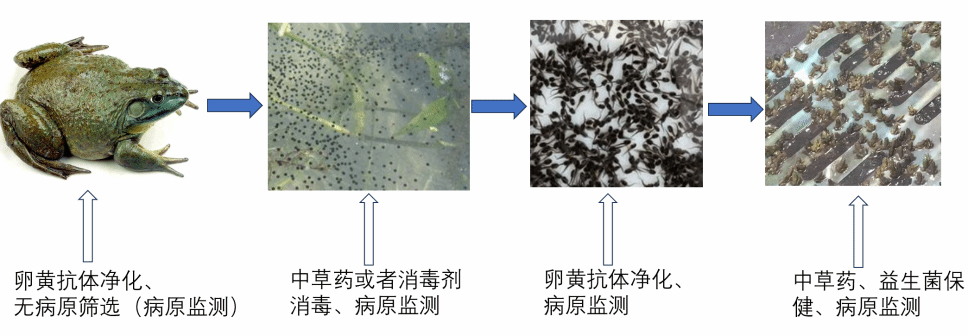 在育种领域,团队同样取得较好的成果。团队与公司合作完成了牛蛙染色体水平全基因组测序工作,为牛蛙新品种的培育奠定了坚实的分子基础。此外,还建立了牛蛙主要病原净化技术体系,为健康苗种的生产提供了科学指导,从源头上保障了牛蛙养殖的质量与效益。