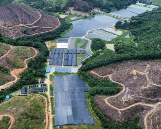 广东海兴农集团牛蛙育苗育种基地主要开展牛蛙亲本群体的保种、苗种选育和苗种生产工作,占地约200亩,包括亲本养殖池5亩、标粗池15亩、育苗车间20亩。
