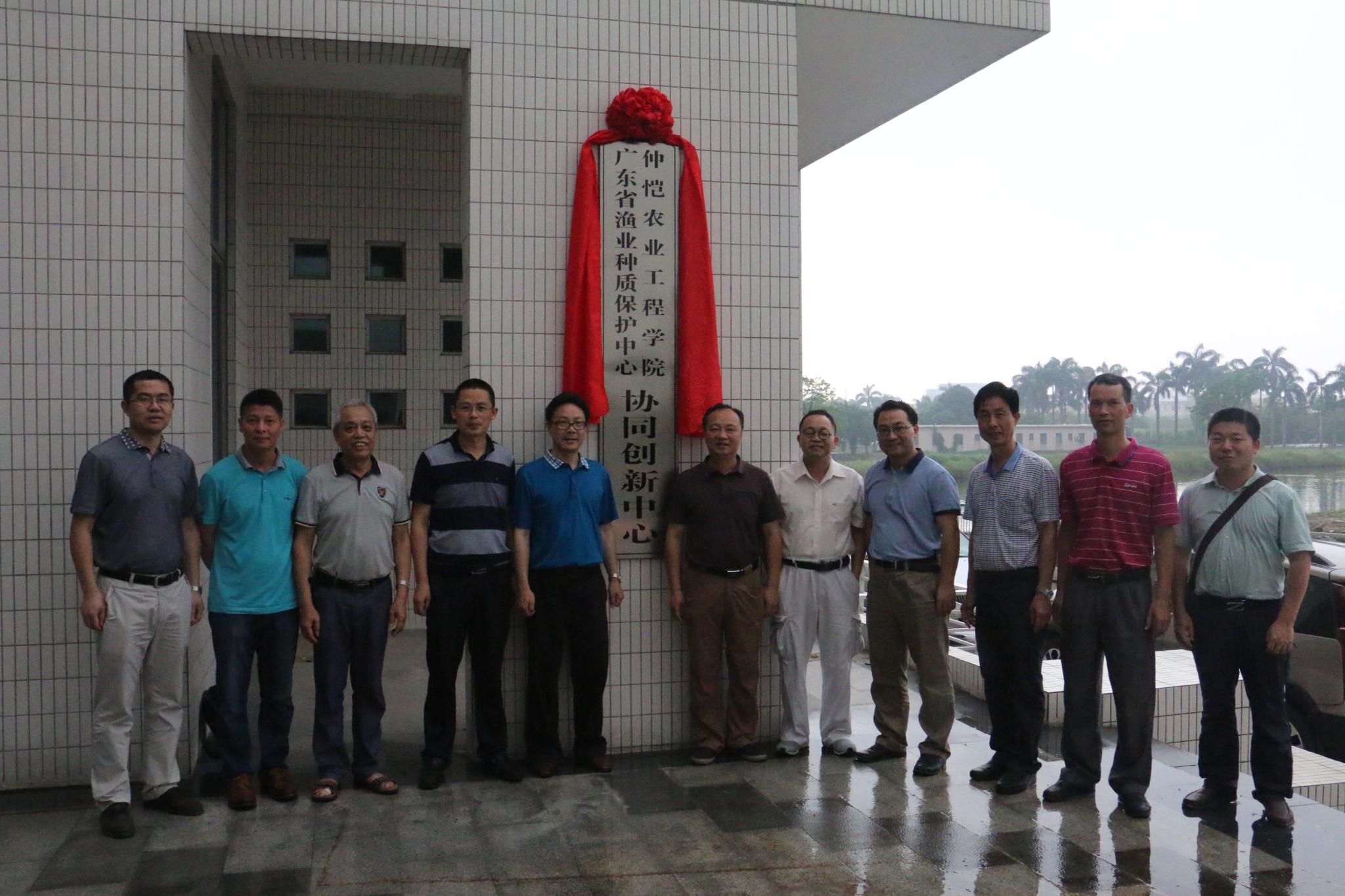 2017年5月22日下午,kaiyun云开登录入口与广东省渔业种质保护中心合作共建的“协同创新中心”,在位于广州市番禺区的广东省渔业种质保护中心正式成立,学校副校长田允波、渔业中心主任刘付永忠代表双方单位揭牌。出席揭牌仪式的还有广东水产学会会长吴灶和,仲恺领军学者林蠡教授、kaiyun云开登录入口党总支书记曾献尼、副院长黄运茂、计算科学学院副院长杨灵,渔业中心副主任黄如寿、陈辉崇,番禺海洋与渔业局处长吴瑞荣,广州华大锐护科技有限公司董事长殷波、总经理舒锐等。