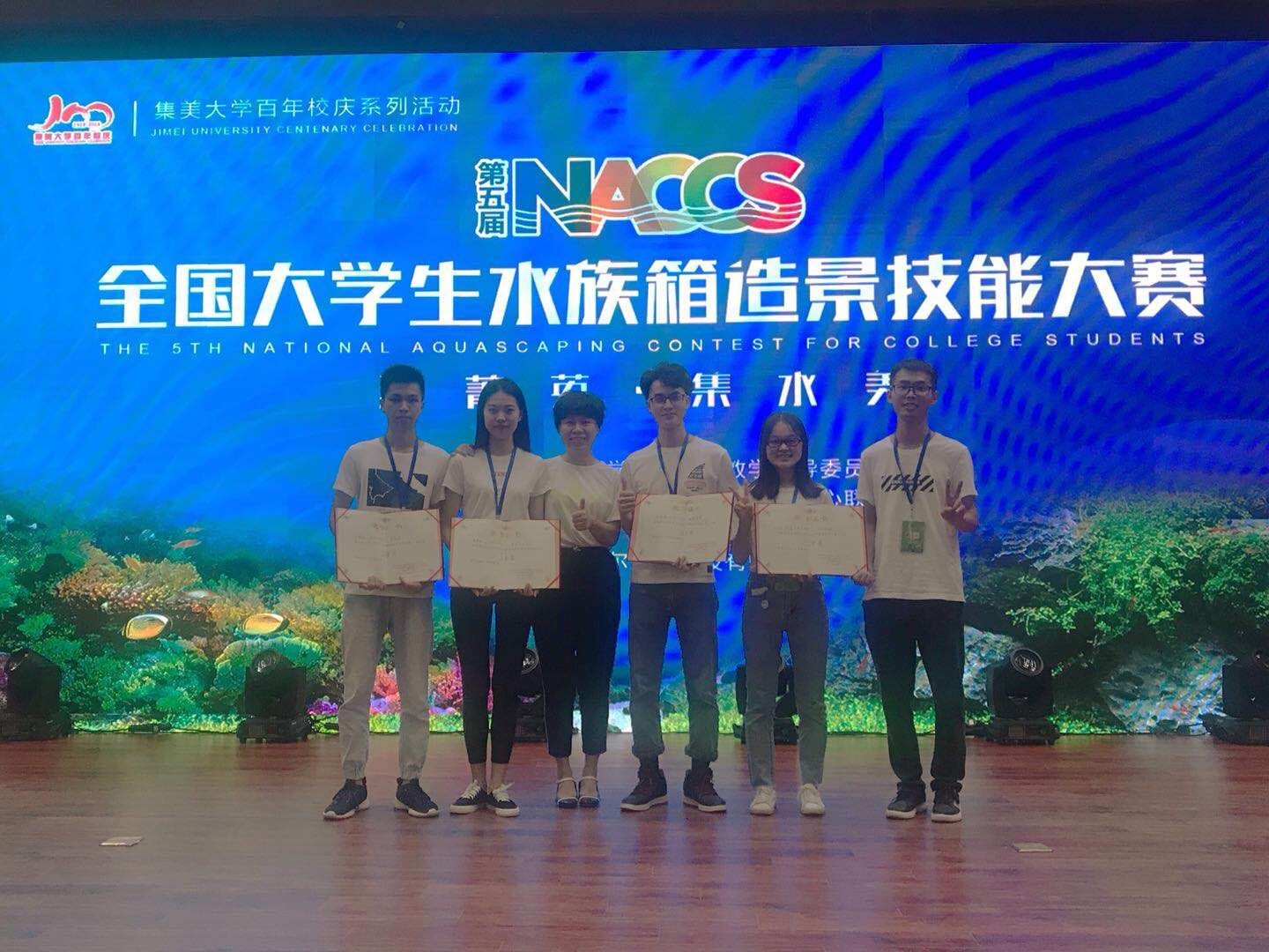 2018年10月12日至15日,第五届全国大学生水族箱造景技能大赛在厦门集美大学举行,kaiyun云开登录入口周萌老师指导的5名学生组成的4个代表队在比赛中获得二等级3项、三等奖1项的优异成绩,在大赛的四个项目均有获奖。