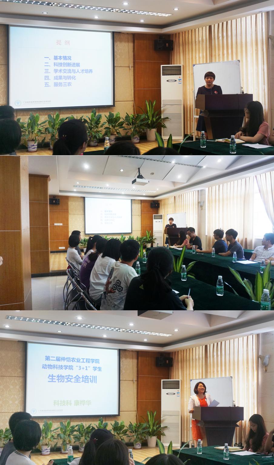 随后,动卫所梅盈洁副所长对该所的基本情况、科技创新进展、学术交流与人才培养、成果与转化、服务三农等方面进行了详细的介绍。办公室曹雅琴主任、科技处康康桦华主任分别对所管理规章制度和实验室与生物安全等进行了培训。