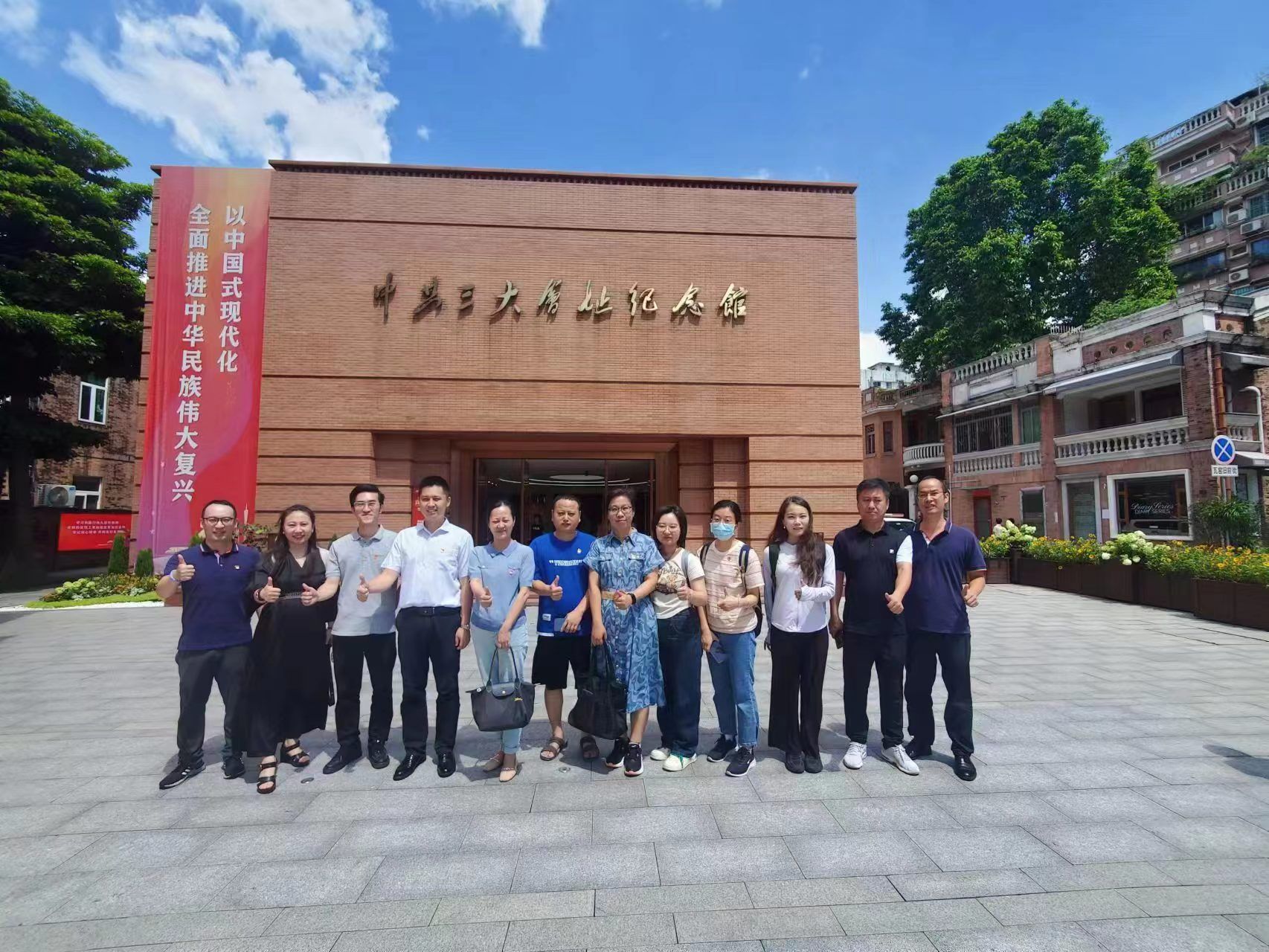 中国共产党第三次全国代表大会1923年在广州召开,中共三大决定全体党员以个人名义加入国民党,同孙中山建立统一战线,使中国共产党从比较狭小的圈子里走出来,在更广阔的革命斗争的天地中接受锻炼,迎接大革命高潮的到来。党员们首先来到中共三大会址遗址广场重温入党誓词,随后进入中国共产党第三次全国代表大会历史陈列馆,按照游览次序逐一观看展出的文物、照片、多媒体视频等,沉浸式了解中共三大召开的历史背景、会议过程、意义与贡献。陈列馆分四个部分设置展览:上下求索——中共三大召开的历史背景,凝聚共识——中共三大的召开,风起云涌——轰轰烈烈的大革命,理想之光——新中国成立前牺牲的中共三大代表。